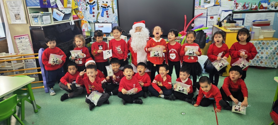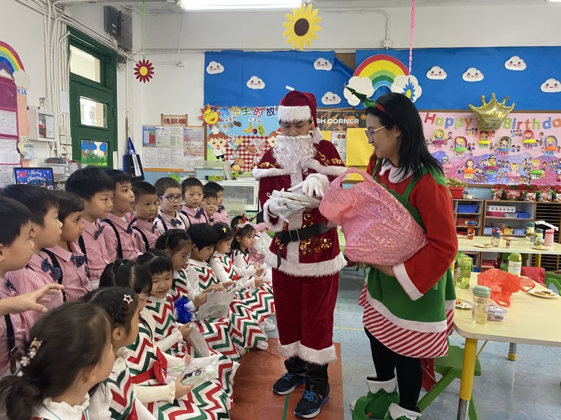 聖誕老人和聖誕精靈姐姐一起走進班房派聖誕禮物